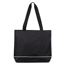 This large tote bag is made from durable 600D polyester Oxford with PVC backing for added water and dirt resistance. It features a spacious main compartment, a heavy-duty zippered top to keep items secure, and 28" shoulder-length handles for easy carrying. Designed for everyday use, it's ideal for groceries, beach days, picnics, or event giveaways. Customizable with screen print decoration.